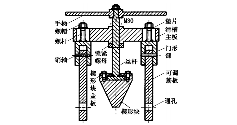 法蘭撐開程度。依據(jù)法蘭類型,設(shè)計(jì)了兩種不同錐度的楔形塊以供選用。