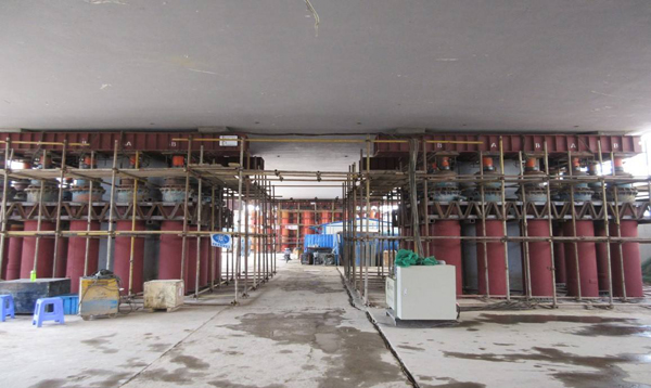 PLC多點控制液壓同步頂升綜合考慮了頂升力和位移的雙重因素。液壓千斤頂可準(zhǔn)確反映出各千斤頂?shù)膶嶋H頂力,位移傳感器(拉線傳感器或光柵尺)可準(zhǔn)確地反應(yīng)出頂升豎向位移。將兩者通過系統(tǒng)進(jìn)行聯(lián)控,可確保頂力的穩(wěn)定輸出,以達(dá)到平穩(wěn)頂升的目的,同時在某支點位移稍有偏差時,可及時通過系統(tǒng)對相應(yīng)支點的頂力進(jìn)行自動調(diào)節(jié),確保頂升過程的同步,確保梁體安全。